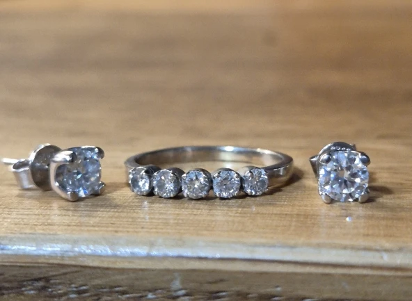 I compared the moissanite earrings with my natural diamond ring. They are beautiful! As you can see from the photos.